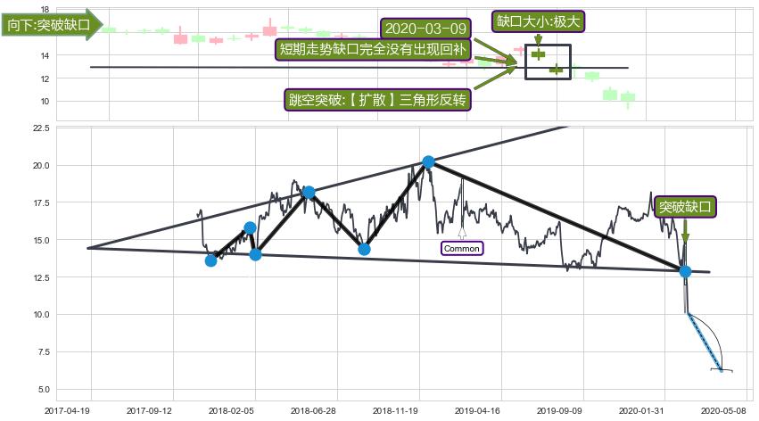 ➢ 2020-03-09形成:向下跳空【突破】缺口