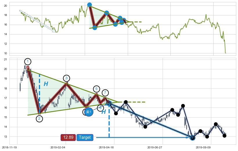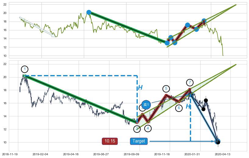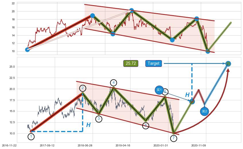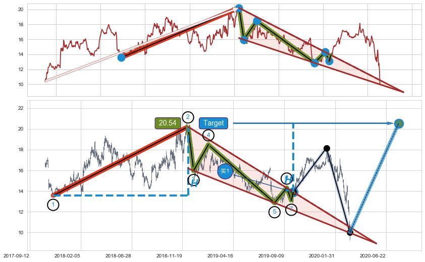 ➢ AI预测: 假定反转如期而至,第❶价格目标位置(2020-07-27, 13.91)