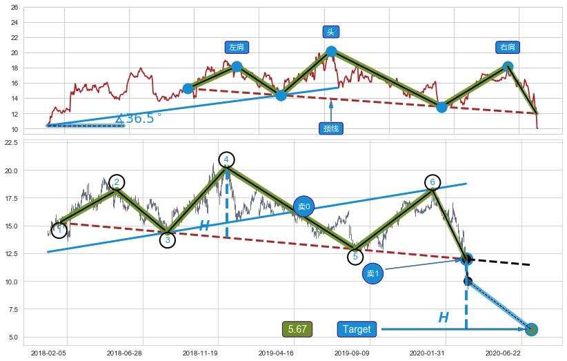 ➣ 最小反转跌幅→𝐇: 6.31 (头部与颈线垂直距离)