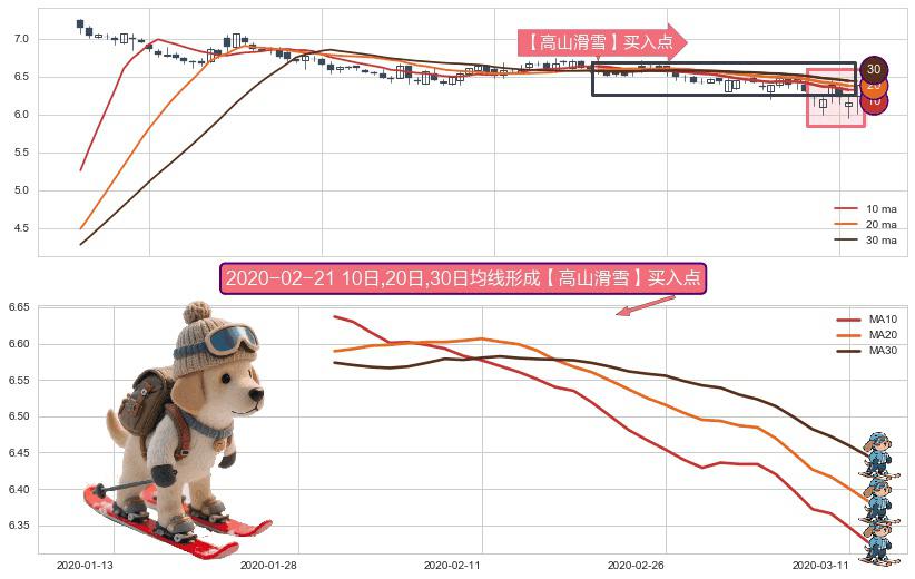形态多维评估: ⚀ 2020-01-30日-2020-03-12日显现 10日-20日-30日均线 【高山滑雪】买入点 看多信号,后市看涨,买入