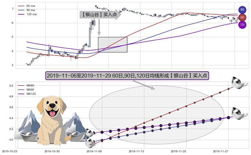 形态多维评估: ⚀ 2019-11-07-日至2019-11-29-日显现 60日-90日-120日均线 【银山谷】买入点 看多信号,后市看涨,买入