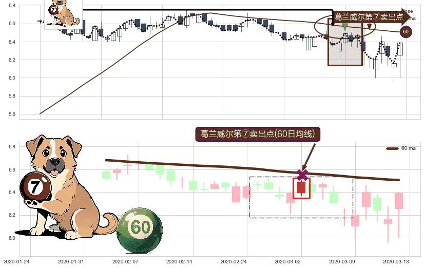 形态多维评估: ⚀ 2020-03-02-日显现 葛兰威尔均线 60日均线 第⑦卖出点 下降趋势的中继信号,后市看跌,卖出信号