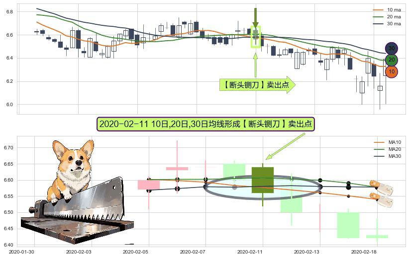 形态多维评估: ⚀ 2020-02-11日显现 10日-20日-30日均线 【断头铡刀】卖出点 看空信号,后市看跌,卖出