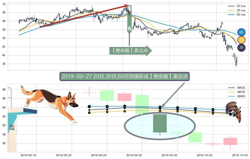 形态多维评估: ⚀ 2019-09-27日显现 20日-30日-60日均线 【绝命跳】卖出点 看空信号,后市看跌,卖出