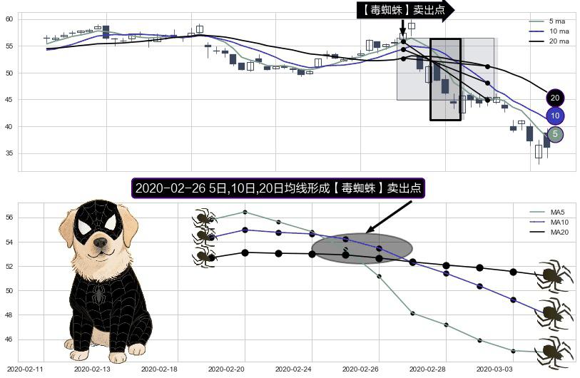 形态多维评估: ⚀ 2020-02-26日显现 5日-10日-20日均线 【毒蜘蛛】卖出点 看空信号,后市看跌,卖出