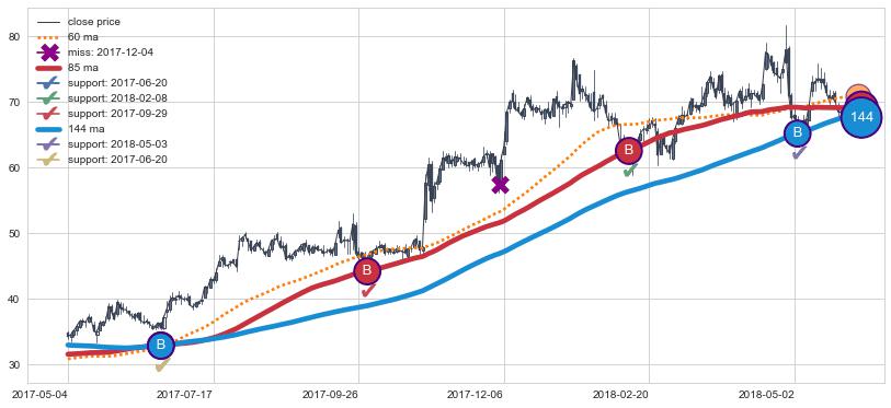 上涨趋势2017-05-04-2018-05-25,均线144, 85确认关键支撑4处