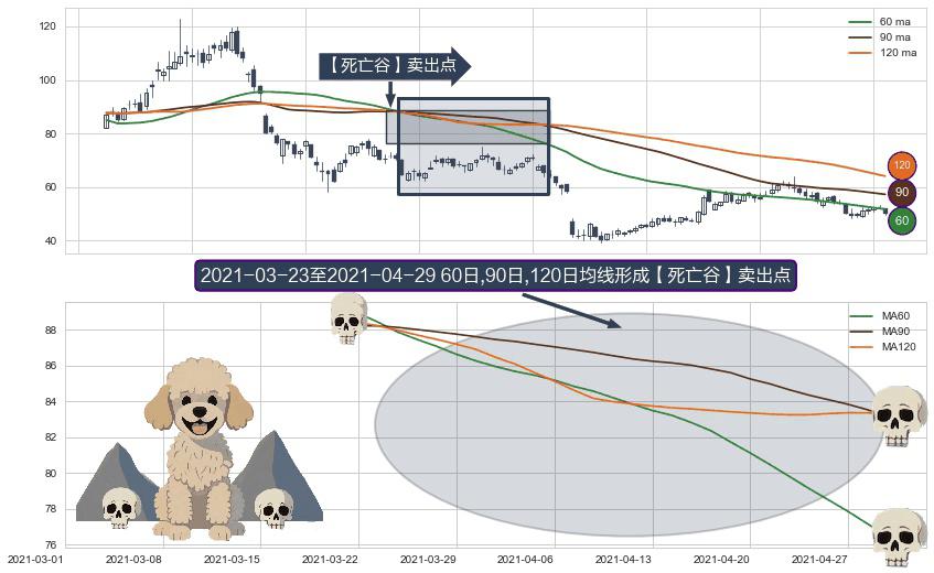 ⚀ 2021-03-24-日至2021-04-29-日显现 60日-90日-120日均线 【死亡谷】卖出点 看空信号,后市看跌,卖出
