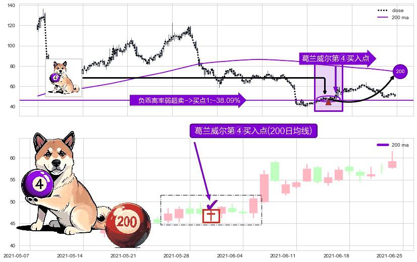 ⚀ 2021-06-01-日显现 葛兰威尔均线 200日均线 第④买入点 下降趋势均值回复的短线反弹信号,后市看涨,买进信号