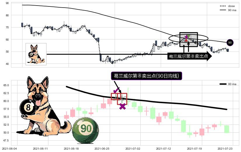 ⚀ 2021-06-29-日显现 葛兰威尔均线 90日均线 第⑧卖出点 下降趋势的中继信号,后市看跌,卖出信号