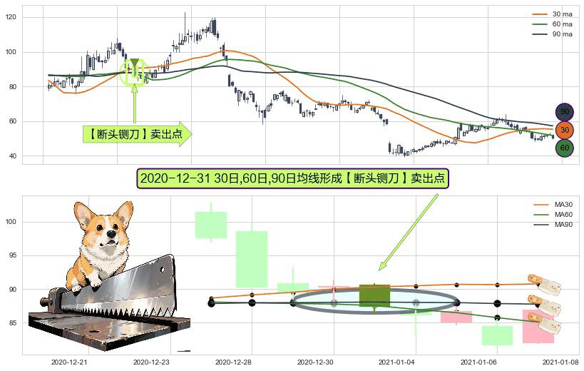 ⚀ 2020-12-31日显现 30日-60日-90日均线 【断头铡刀】卖出点 看空信号,后市看跌,卖出