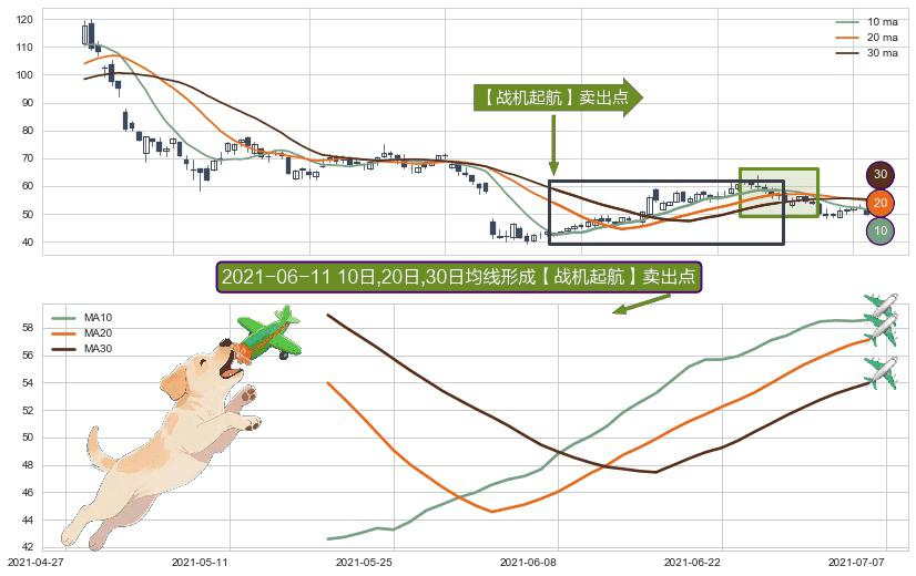 ⚀ 2021-05-19日-2021-07-06日显现 10日-20日-30日均线 【战机起航】卖出点 看空信号,后市看跌,卖出