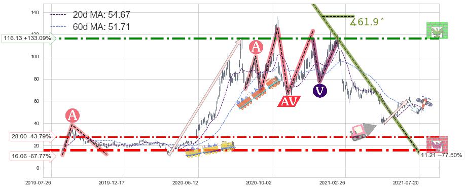 ♘ 阻力价格位116.13,可信任强度83.07%,距离最后交易2021-07-23形成的收盘价格49.82相差 +133.09%