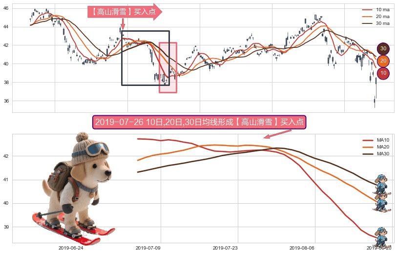 形态多维评估: ⚀ 2019-07-03日-2019-08-16日显现 10日-20日-30日均线 【高山滑雪】买入点 看多信号,后市看涨,买入