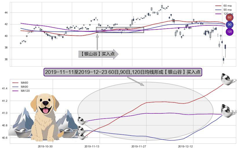 形态多维评估: ⚀ 2019-11-12-日至2019-12-23-日显现 60日-90日-120日均线 【银山谷】买入点 看多信号,后市看涨,买入