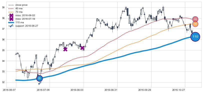 上涨趋势2016-06-07-2016-11-02,均线110确认关键支撑1处