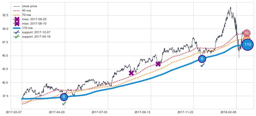 上涨趋势2017-02-07-2018-02-15,均线110确认关键支撑2处