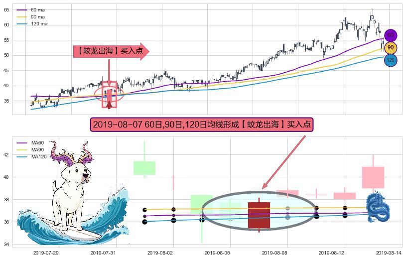 ⚀ 2019-08-07日显现 60日-90日-120日均线 【蛟龙出海】买入点 看多信号,后市看涨,买入