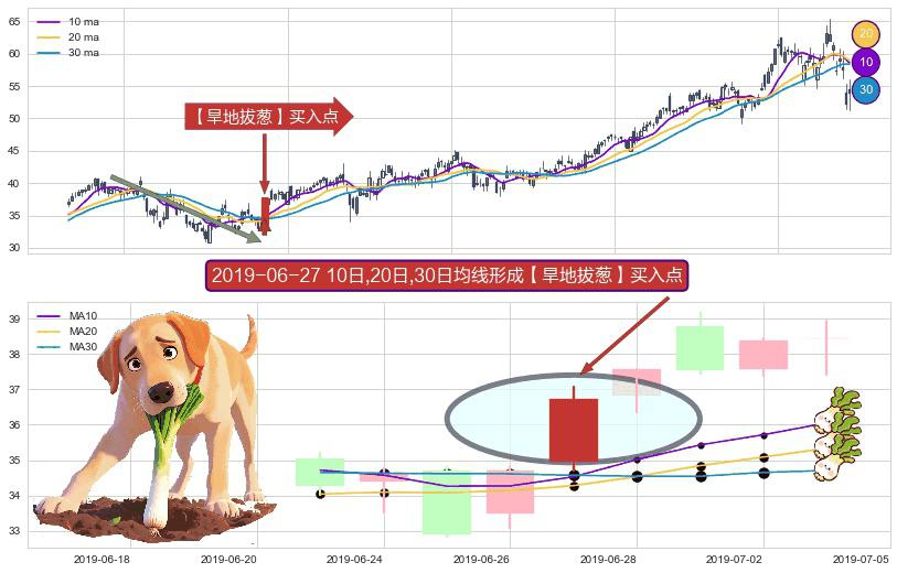 ⚀ 2019-06-27日显现 10日-20日-30日均线 【旱地拔葱】买入点 看多信号,后市看涨,买入