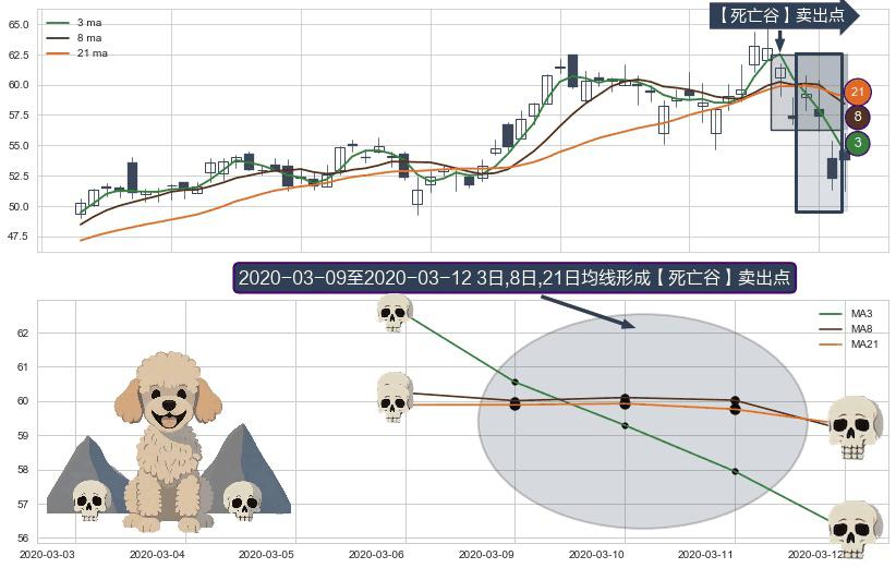 ⚀ 2020-03-10-日至2020-03-12-日显现 3日-8日-21日均线 【死亡谷】卖出点 看空信号,后市看跌,卖出