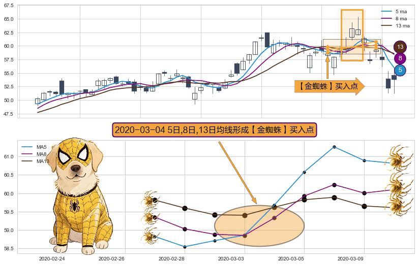 ⚀ 2020-03-04日显现 5日-8日-13日均线 【金蜘蛛】买入点 看多信号,后市看涨,买入