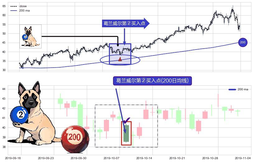 ⚀ 2019-10-08-日显现 葛兰威尔均线 200日均线 第②买入点 上升趋势的中继信号,后市看涨,买进信号