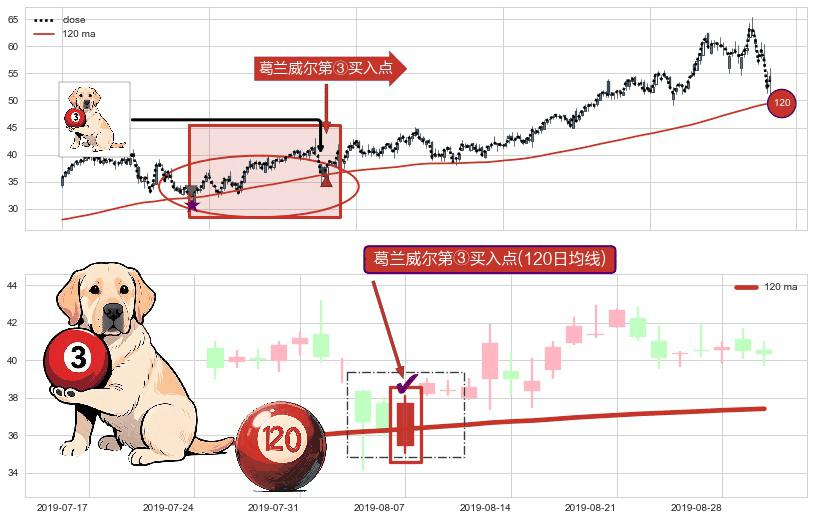 ⚀ 2019-08-07-日显现 葛兰威尔均线 120日均线 第③买入点 上升趋势的中继信号,后市看涨,买进信号