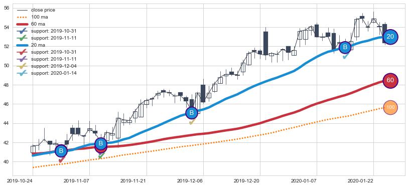 ⚄ 价格在均线获取支撑后已再次向上反弹了【较长】距离, 第②买入点 支撑效果得到【初步确认】