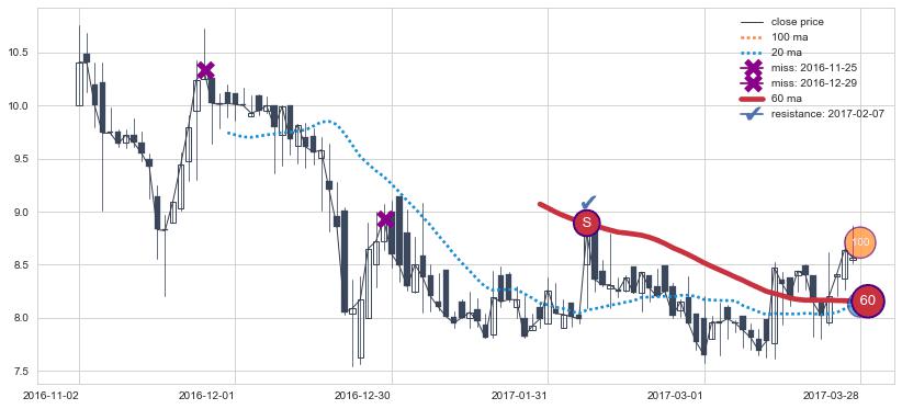 2017-03-28至2017-06-19 慢线与快线多次接触,存在上下穿越,有缠绕