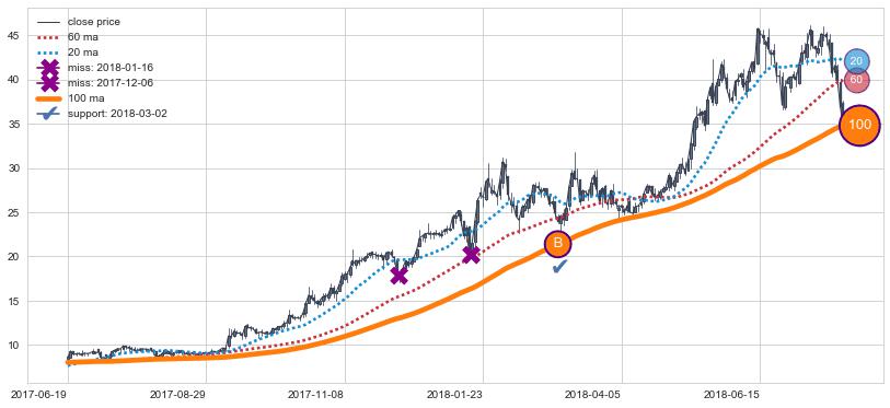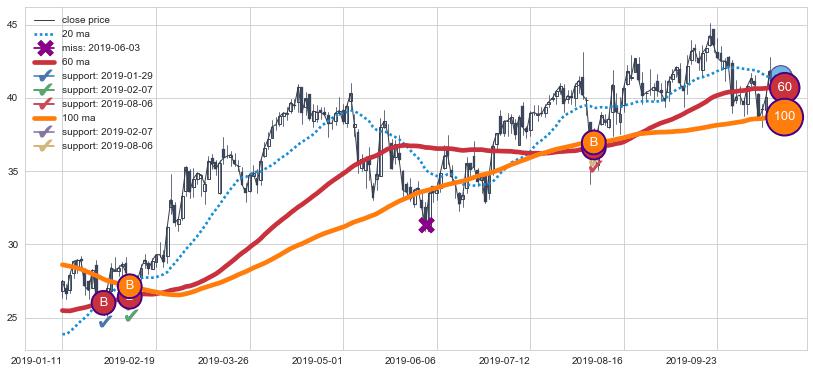 ⚂ 2019-06-03-日均线向下破位,2019-08-07-日重新上穿突破均线,均线支撑再次生效