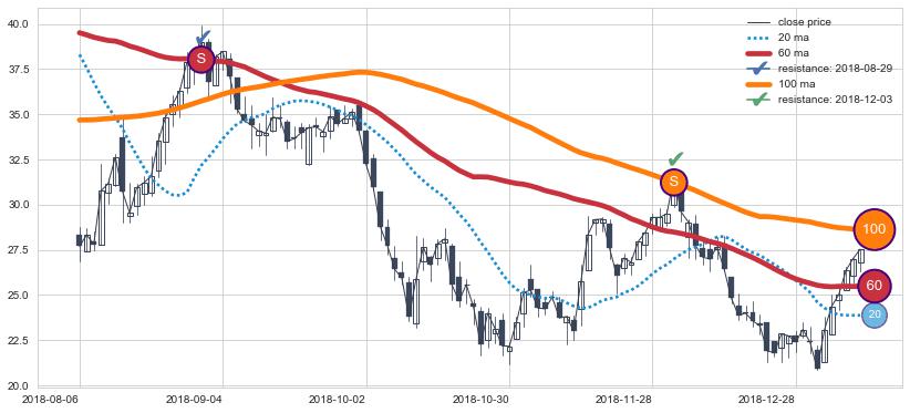 ➢ 最优均线组合共正确确认支撑阻力信号11处,正确确认率 68.75%