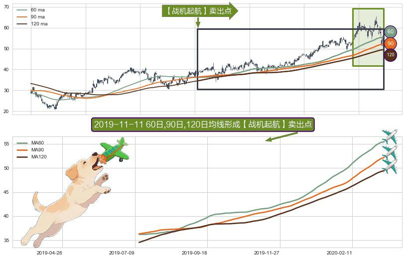 ⚀ 2019-07-12日-2020-03-13日显现 60日-90日-120日均线 【战机起航】卖出点 看空信号,后市看跌,卖出