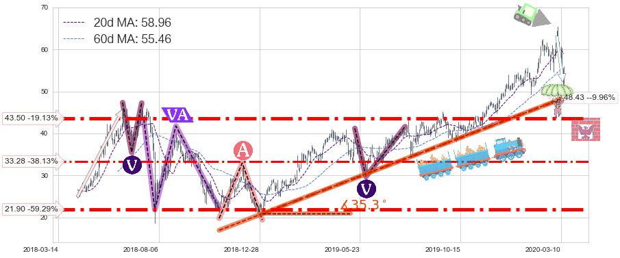♘ 支撑价格位43.50,可信任强度88.37%,距离最后交易2020-03-13形成的收盘价格53.79相差 -19.13%
