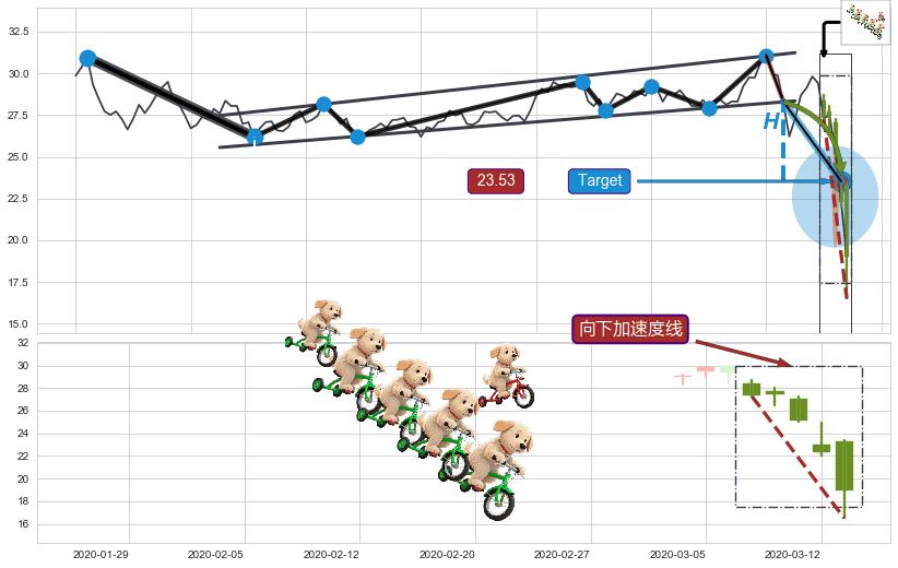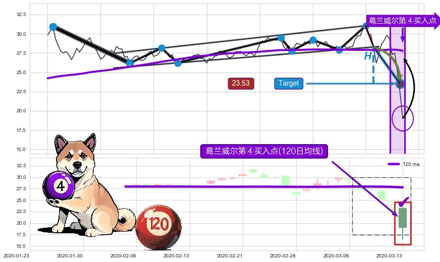 ➢ 【已达成】最小【整理】第一目标价格→(2020-03-12: 23.53 ), 后续继续【整理】下跌动力微弱,下跌较小