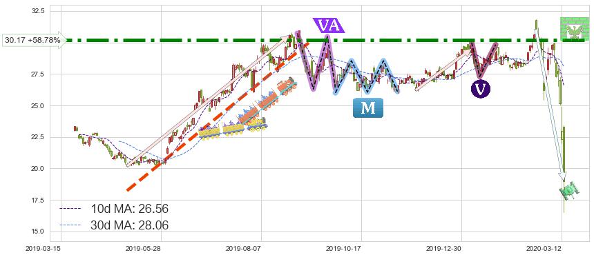 ♘ 阻力价格位30.17,可信任强度97.99%,距离最后交易2020-03-13形成的收盘价格19.00相差 +58.78%