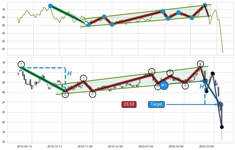 ➣ 最小中继整理跌幅→𝐇: 4.76 (𝐇旗杆的长度:旗杆起点→顶点)