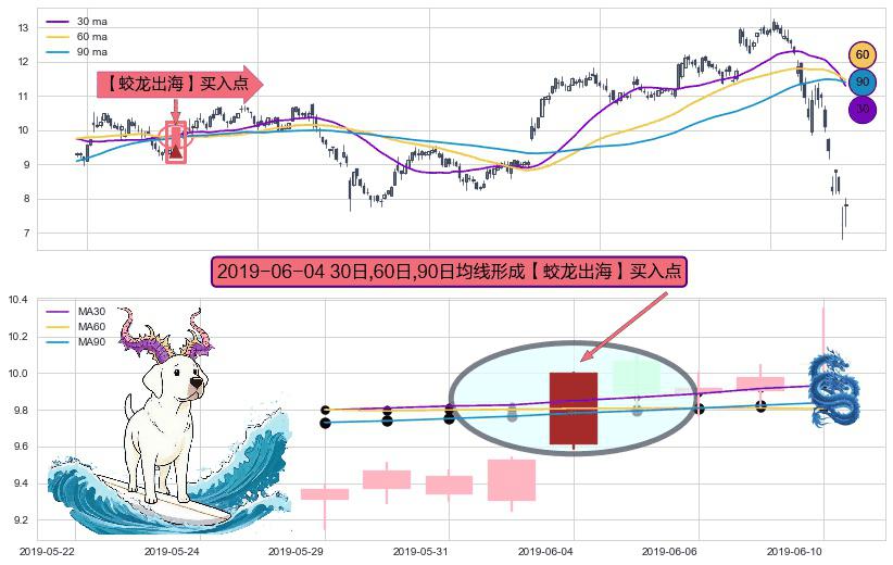 ⚀ 2019-06-04日显现 30日-60日-90日均线 【蛟龙出海】买入点 看多信号,后市看涨,买入