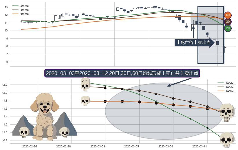 ⚀ 2020-03-04-日至2020-03-12-日显现 20日-30日-60日均线 【死亡谷】卖出点 看空信号,后市看跌,卖出
