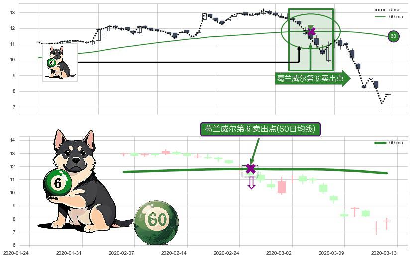 ⚀ 2020-02-25-日显现 葛兰威尔均线 60日均线 第⑥卖出点 走势反转见顶信号,后市看跌,卖出信号