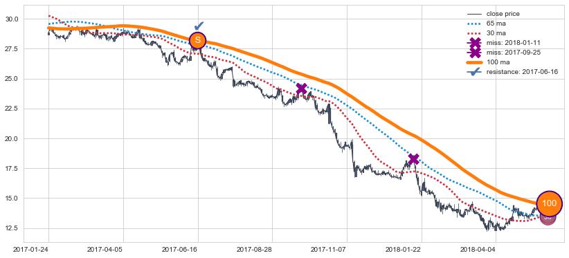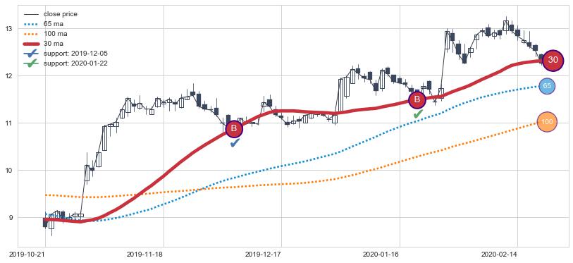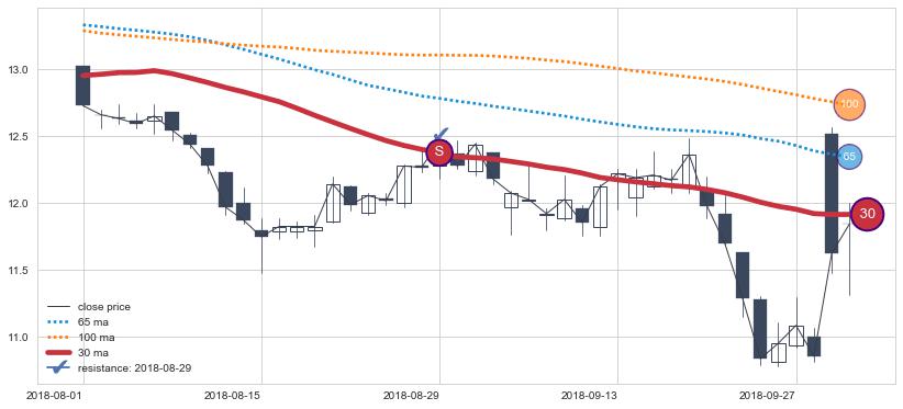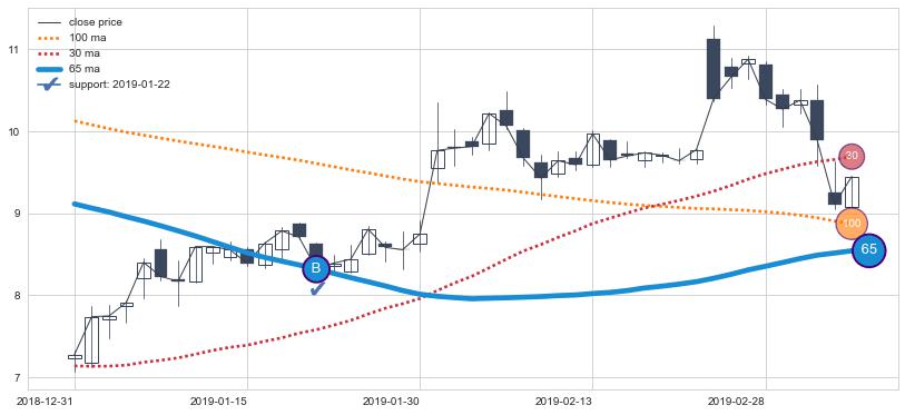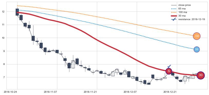 ⚃ 在破位点附近ma走势已有下垂迹象,稍后的走势中ma下降趋势明显,信号【可信度高】
