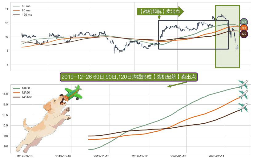 ⚀ 2019-10-29日-2020-02-24日显现 60日-90日-120日均线 【战机起航】卖出点 看空信号,后市看跌,卖出