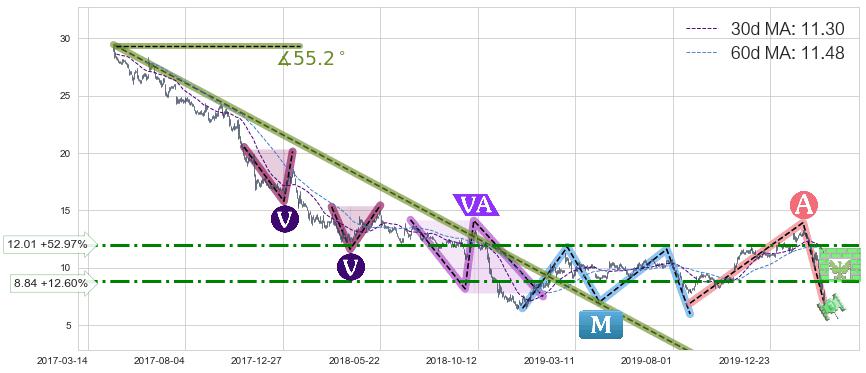 ♘ 阻力价格位12.01,可信任强度55.74%,距离最后交易2020-03-13形成的收盘价格7.85相差 +52.97%