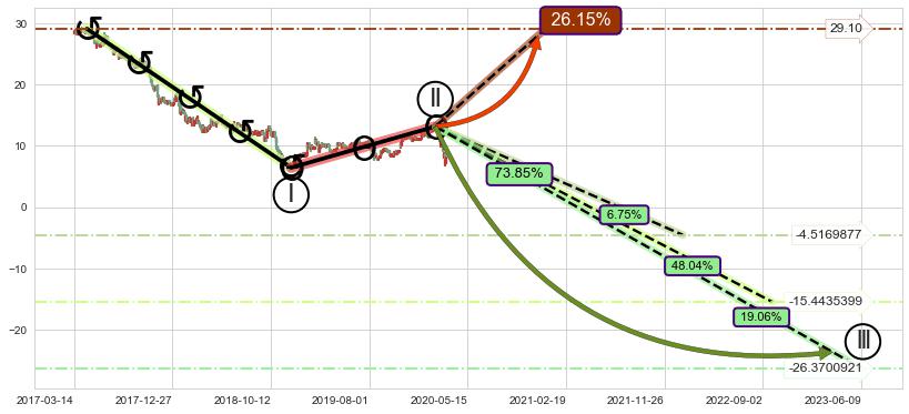 ➢ AI预测: 假定反转启动后, 第❷目标位置(2021-06-23, 10.07)