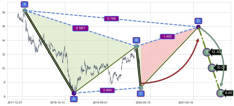 ➣ 未完成【伽利】形态起点X: 2018-01-11, 已到达C点: 2020-03-12, 预测最终D点: 2021-03-25, 共815交易日