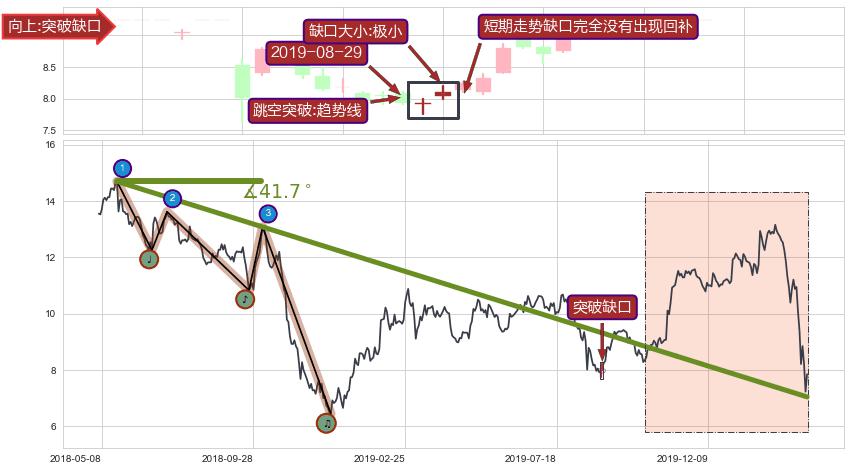 ➣ 2018-05-22-2019-11-07下跌趋势存在反转上涨[机会],其原下跌趋势的阻力位(7.04)已被突破[强支撑信号],原下跌趋势角度: 41.7˚