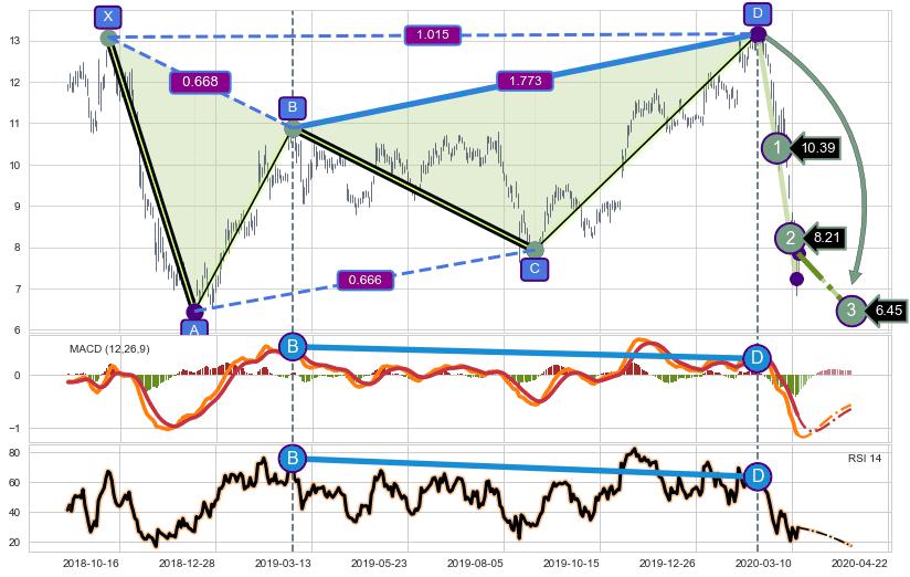 ➢ 谐波价格D点比B点高 ⤴,【MACD】指标D点比B点低 ⤵️