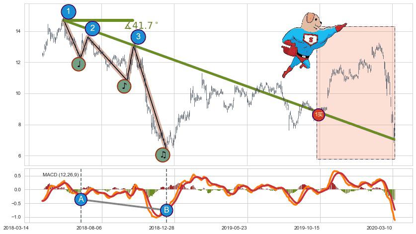 | 3 🅚:【死亡谷】卖出点 ➕ 📐:升旗形下行突破支撑位破位, 猜想持续下沉下跌,被突破的支撑位已变为阻力位 ☞ 看空信号 ⇥ 【均线】交织【图形】⇥ 综合量化分数: 47 | > |