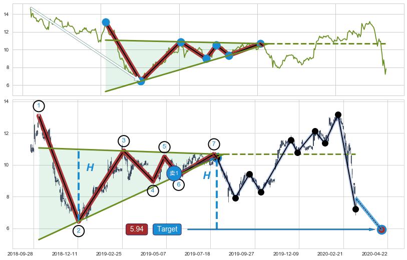 ➣ 2020-03-09到达第❷价格目标位置8.21