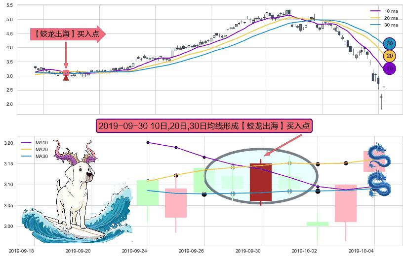 ⚀ 2019-09-30日显现 10日-20日-30日均线 【蛟龙出海】买入点 看多信号,后市看涨,买入