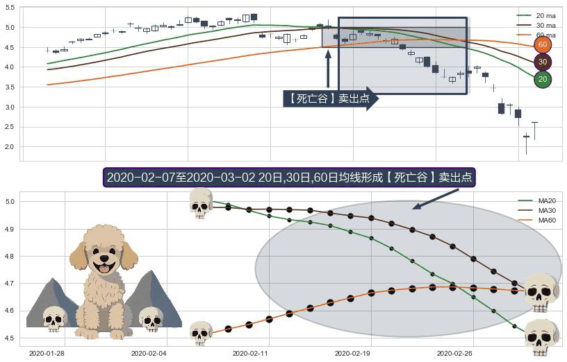 ⚀ 2020-02-10-日至2020-03-02-日显现 20日-30日-60日均线 【死亡谷】卖出点 看空信号,后市看跌,卖出