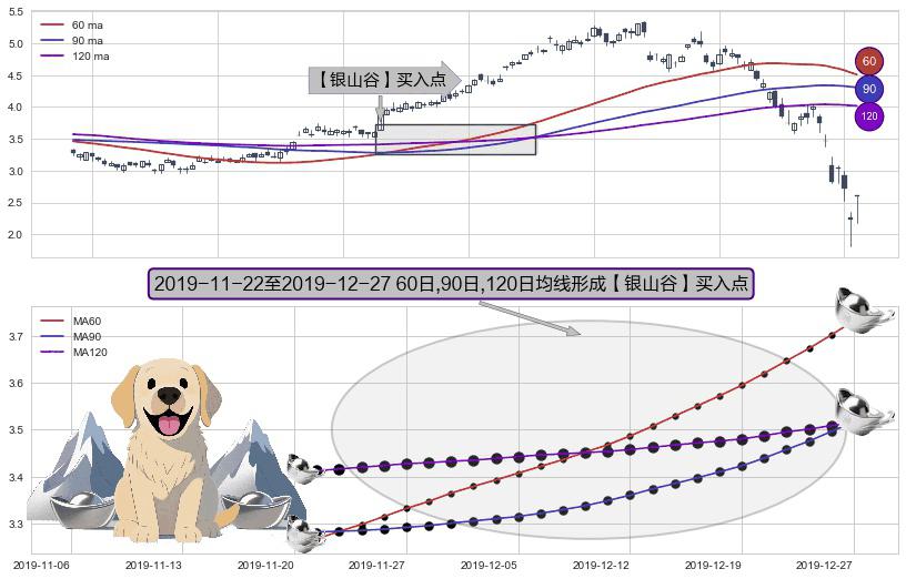 ⚀ 2019-11-25-日至2019-12-27-日显现 60日-90日-120日均线 【银山谷】买入点 看多信号,后市看涨,买入